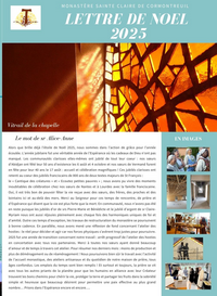 Alors que brille déjà l’étoile de Noël 2025, nous sommes dans l’action de grâce pour l’année écoulée. L’année jubilaire fut une véritable année de l’Espérance où les cadeaux de Dieu n’ont pas manqué. Les communautés clarisses elles-mêmes ont jubilé de tout leur cœur : nos sœurs d’Abidjan ont fêté leur 50 ans d’existence les 6 août et 4 octobre et nos sœurs de Vermand furent en fête pour leur 40 ans le 17 août : accueil et célébration magnifiques ! Ces jubilés clarisses ont retenti au cœur des jubilés franciscains de 800 ans de deux textes majeurs de St François : le « Cantique des créatures » et « Écoutez petites pauvres » ; nous avons pu vivre des moments inoubliables de célébration chez nos sœurs de Nantes et à Lourdes avec la famille franciscaine.