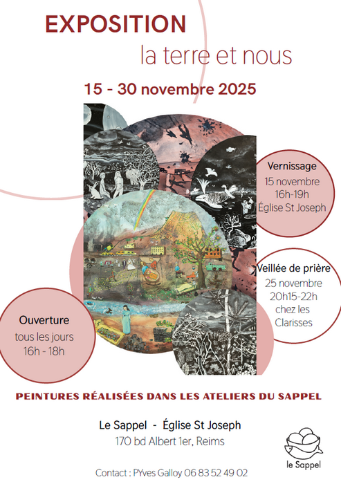 La communauté vous invite à venir participer à une veillée de prière sur le thème de « La terre et nous » préparée avec le groupe du SAPPEL de Reims. Ils exposeront leurs peintures réalisées collectivement autour de l’encyclique « Laudato Si » du pape François sur la sauvegarde de la Maison Commune, notre soeur notre mère la Terre.